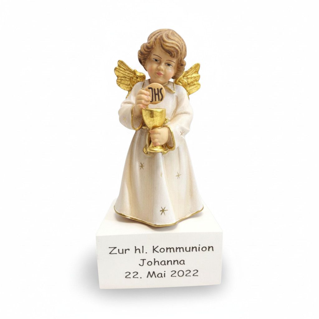 Kommunionengel mit Gravur kaufen – Schutzengel aus Holz mit Sockel