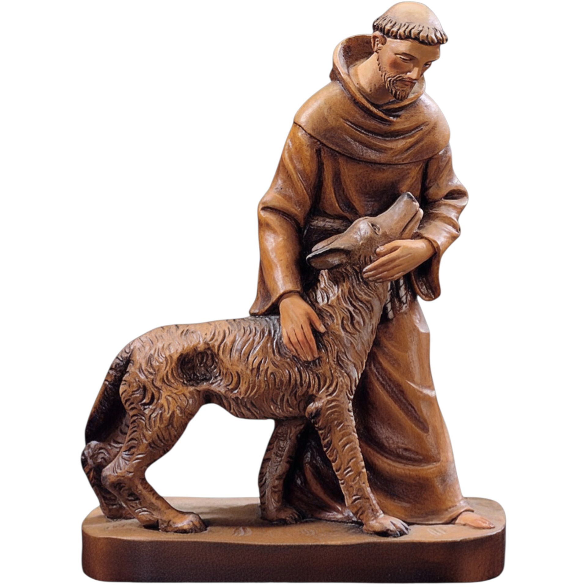 Hl. Franziskus mit Wolf | Holzfigur geschnitzt | Schutzpatron der Tiere