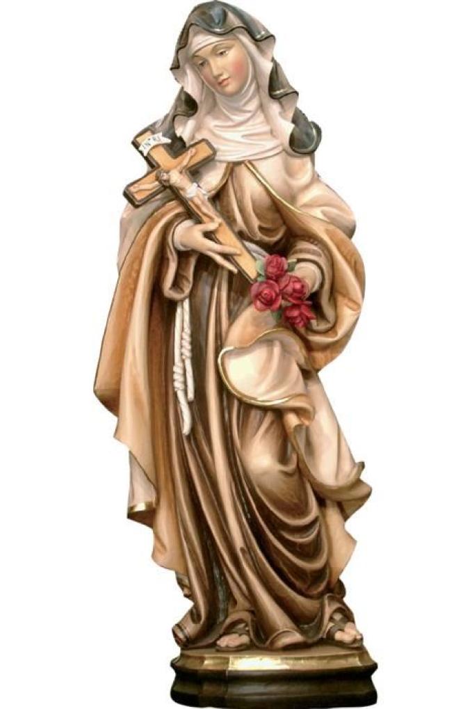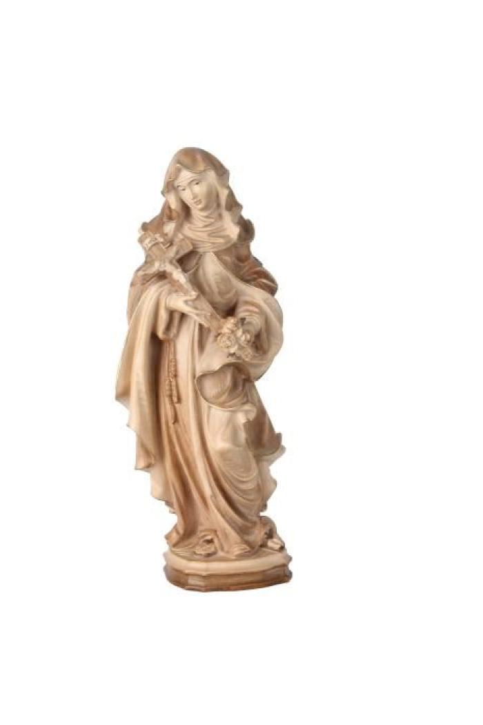 Figur der Hl. Theresia mit Rosen, sehr kunstvoll und detailreich aus Ahornholz geschnitzt und mit hochwertigen Ölfarben von Hand bemalt. Diese Heiligenfigur ist in der Ausführung Color lagernd. Gerne fertigen wir Ihnen zum Kauf einer Heiligenfigur einen Sockel mit Wunschgravur.