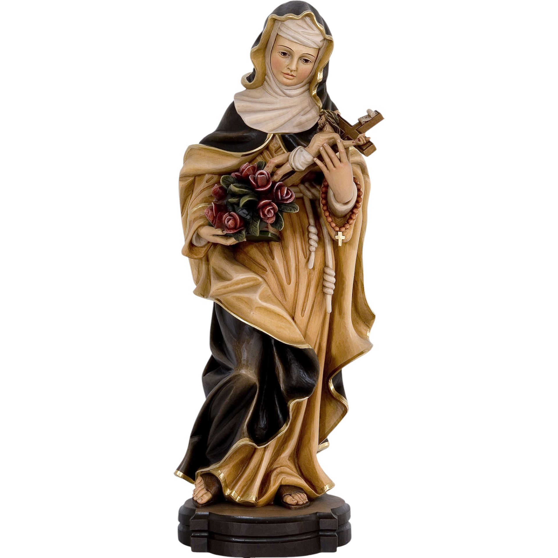 Diese detailreiche Figur, sorgfältig aus Ahorn oder Lindenholz geschnitzt, bringt die faszinierende Ausstrahlung der Hl. Theresia mit Rosen zum Leben.