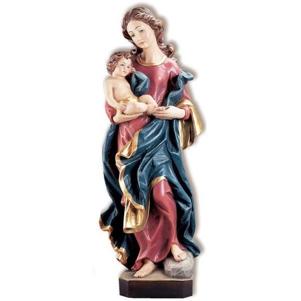 Unsere Holzfiguren werden nach traditionellen handwerklichen Techniken gefertigt: maschinell vorgefräst und anschließend sorgfältig von Hand nachgearbeitet, um höchste Detailtreue zu erreichen. Je nach Ausführung ist die Madonna Gregor naturbelassen, gebeizt oder farbig gestaltet. Bemalte Versionen werden mit hochwertigen Ölfarben veredelt und teilweise mit dezenten Goldakzenten versehen.