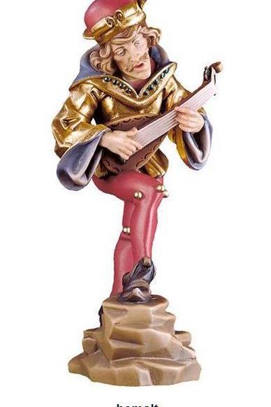 Sehr schöne geschnitzte Holzfigur als Moriskentänzer mit Mandoline Wie auf den Fotos zu sehen, eine hochwertige und dekorative Arbeit. Durch aufwendige Handarbeit wird der Artikel traditionell bearbeitet, um ein lebensechtes Erscheinungsbild zu erhalten. Der Künstler Erasmus Grasser hat im Jahre 1480 für den Tanzsaal des Münchner Rathauses sechzehn holzgeschnitzte Tänzer geschaffen, unseren Bildhauer ist es gelungen diese so realistisch wie möglich nachzuschnitzen.
