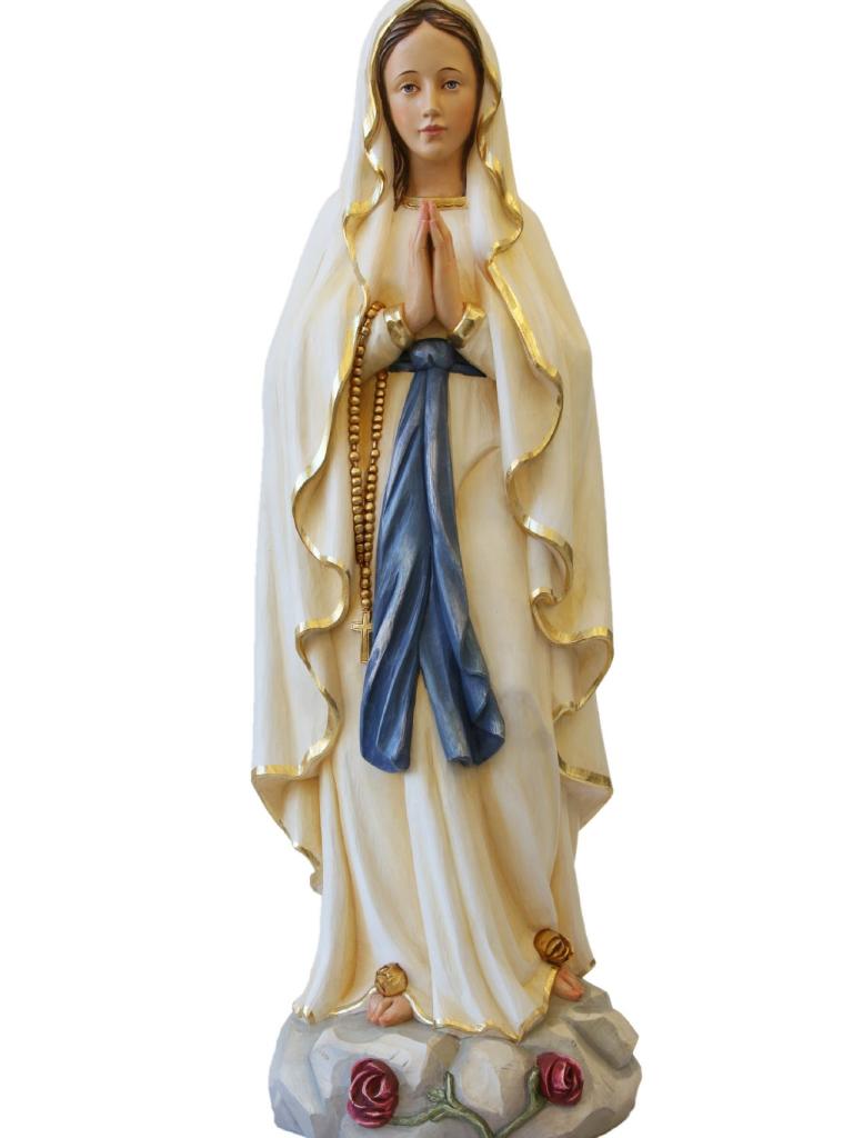 Hochwertige Statue der Lourdes Madonna betend wurde von unseren Designern liebevoll und sehr detailgetreu entworfen und aufwendig verarbeitet. Dieses Modell wurde aus hochwertigem Fiberglas gefertigt und mit großer Sorgfalt handbemalt. Die Figur ist für den Innen- und Außenbereich geeignet.