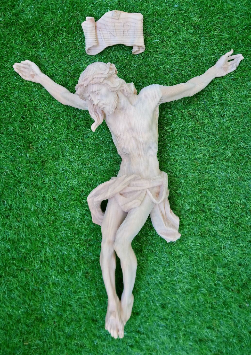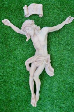 Christuskörper in Lärchenholz mit Inri Schild in allerbester Holzqualität. Lärchenholz ist immer wieder ein überzeugendes natürliches Material für den Außenbereich Um Ihren Christuskörper länger gegen Witterungseinflüsse zu schützen, sollten Sie ihn mit einen Anstrich gegen Nässe, Fäulniss, UV- Stahlung versehen. Eine Kreuzkonstruktion mit Überdachung ist zu empfehlen.