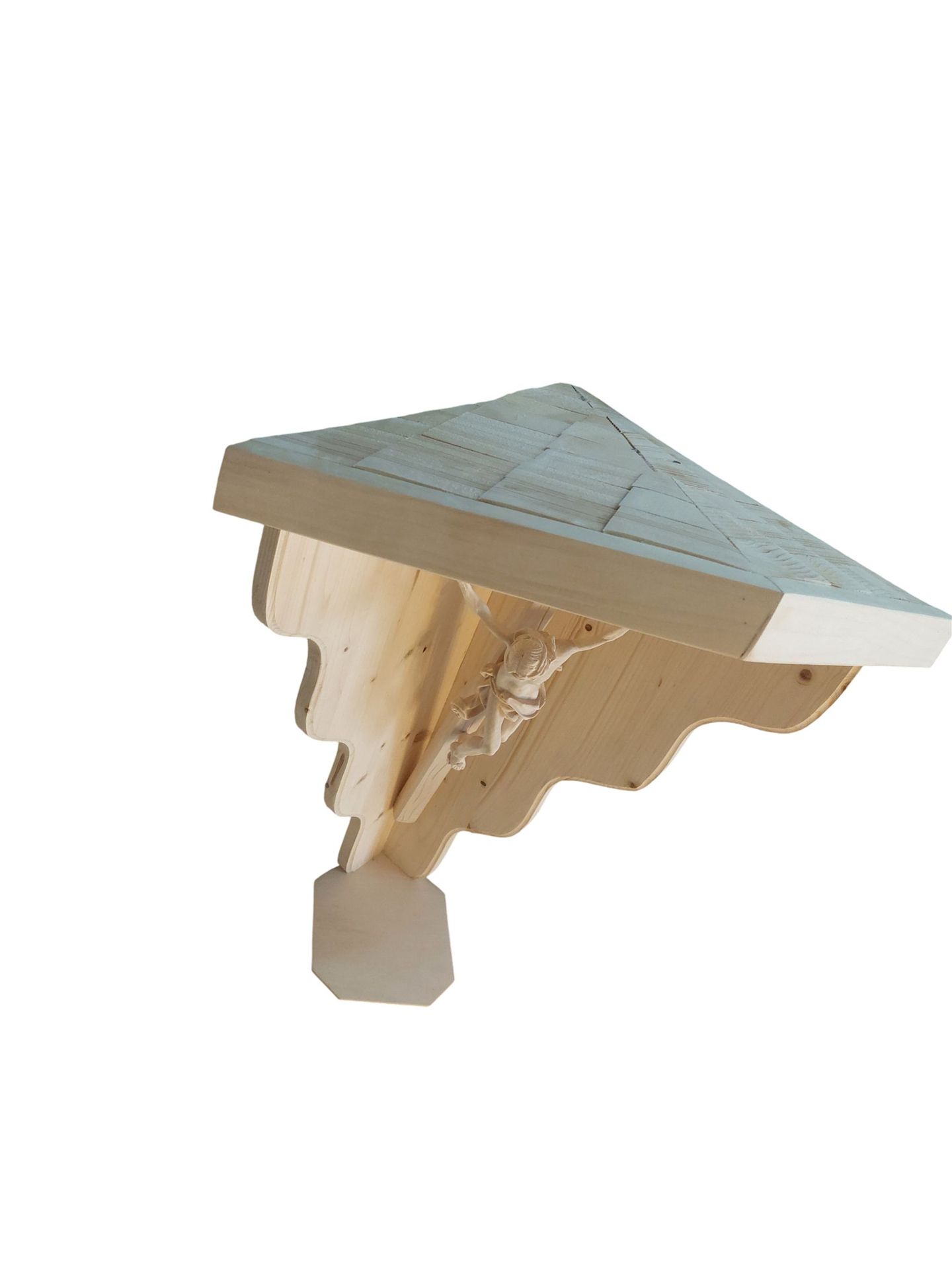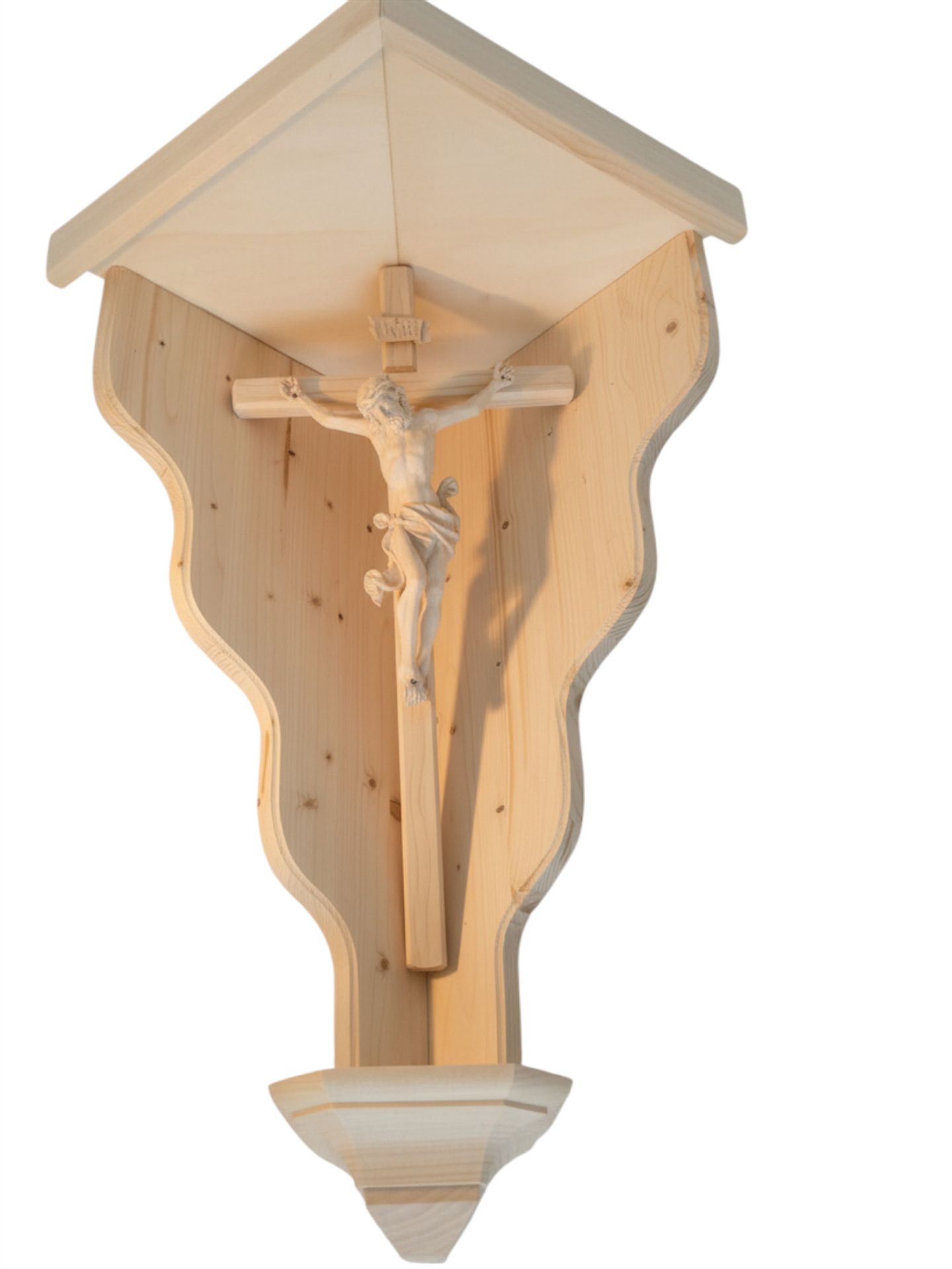 Dieses Eckmarterl mit Holzkreuz ist ein besonderes Zeichen traditioneller Holzkunst und religiöser Symbolik. Mit viel Sorgfalt und Erfahrung wird jedes Stück ausschließlich in unserer eigenen Werkstatt gefertigt und ist damit ein echtes Unikat.