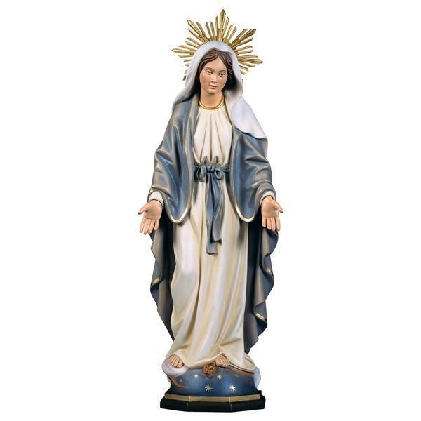 Madonna Gnadenspenderin modern – geschnitzte Holzfigur mit Schein