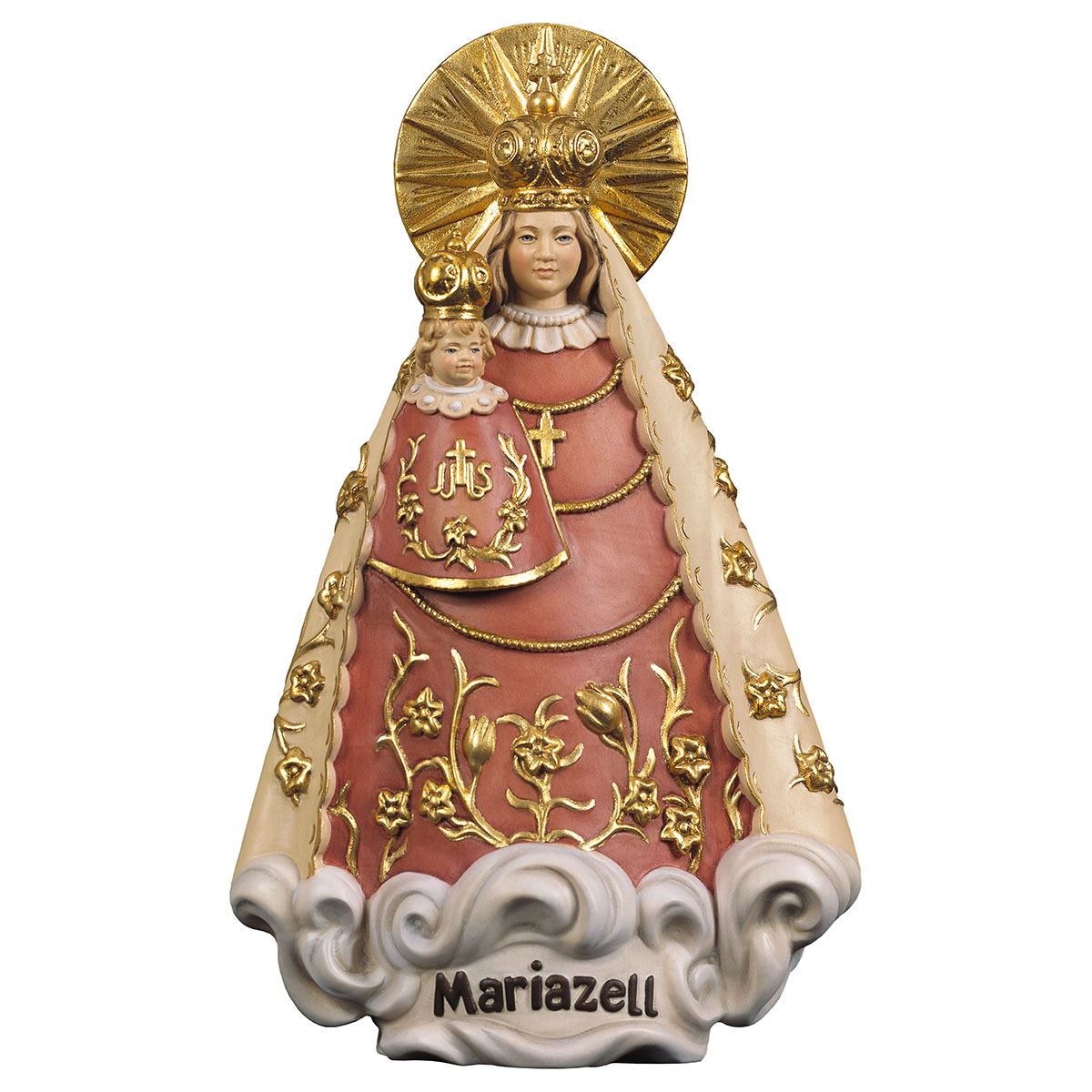 Die Basilika von Mariazell gilt als wichtigster Wallfahrtsort in ganz Europe. Ihr Herzstück ist die nur 48cm hohe Muttergottes Statuemit Kind aus Lindenholz geschnitzt. Die Muttergottes bekommt immer wieder ein neues aufwendig gestaltetes Kleid. Auch diese Version ist prächtig gewandelt und ist ein Schmuckstück für jedes Haus.