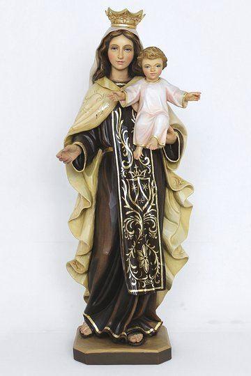 Jungfrau vom Berge Karmel sehr kunstvoll und detailreich aus Ahorn oder Lindenholz geschnitzt. Sie können die verschiedenen Oberflächen Ausführungen der Figur sowie die Größen auswählen. Diese Holzfigur ist kurzfristig lieferbar. Heiligenfiguren und Holzschnitzereien werden auch heute noch nach traditionellen Techniken hergestellt . Alle Figuren werden maschienell vorgefräst und von Hand nachgearbeitet. Nur so können die Figuren bezahlbar produziert werden. Bemalte Holzfiguren werden mit hochwertigen Ölfarben von Hand veredelt und teilweise mit Blattgold belegt. Gerne fertigen wir für Sie einen Sockel mit Wunschgravur Sehr beliebte Figur Jungfrau vom Berge Karmel aus Ahornholz geschnitzt und in der Ausführung Color mit Ölfarben handemalt. Der 16. Juli 2018 ist der Gedenktag Unserer Lieben Frau auf dem Berge Karmel. Dieser Tag wird auch als Skapulier-Fest bezeichnet - benannt nach dem Skapulier, einem Überwurf über die Tunika einer Ordenstracht. Es besteht aus einem vorn und hinten bis fast zum Fußboden reichenden Tuch, das normalerweise durchgehend gerade oder an den Schultern etwas breiter und auf Saumhöhe geringfügig schmaler ist. Das Skapulier-Fest ist erstmals 1386 in englischen Karmelitenklöstern als ordensinternes Fest bezeugt. Karmeliten sind die Mitglieder des römisch-katholischen "Ordens der Brüder der allerseligsten Jungfrau Maria vom Berge Karmel", der um das Jahr 1150 am Karmelgebirge im heutigen Israel gegründet wurde. Maria war nicht nur Vorbild, sondern auch Schutzpatronin für die Karmeliten, weshalb schon recht früh das Bedürfnis aufkam, ein eigenes Gedenk- und Dankfest zu feiern. Das Fest wird seit dem 15. Jahrhundert als Gedenktag Unserer Lieben Frau auf dem Berge Karmel am 16. Juli begangen. 1595 wurde es von der vatikanischen Ritenkongregation auch außerhalb des Ordens ermöglicht, 1726 von Papst Benedikt XIII. für die ganze katholische Kirche eingeführt. Besondere Bedeutung bekam das Fest durch die Verbindung mit dem Skapulier. In einer Vision erschien dem Hl. Simon Stock, Oberer der Karmeliten, die Gottesmutter Maria mit einem Skapulier in der Hand und dem Versprechen, dass jeder, der es trägt, unter ihrem besonderen Schutz steht; auch Angehörige anderer Orden baten dann, ein Skapulier tragen zu dürfen. (Mit Material von: Wikipedia) Der Text "Tag Unserer Lieben Frau auf dem Berge Karmel" wurde von www.kleiner-kalender.de entnommen.