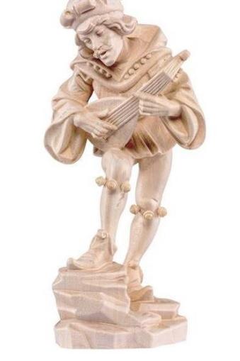 Sehr schöne geschnitzte Holzfigur als Moriskentänzer mit Mandoline Wie auf den Fotos zu sehen, eine hochwertige und dekorative Arbeit. Durch aufwendige Handarbeit wird der Artikel traditionell bearbeitet, um ein lebensechtes Erscheinungsbild zu erhalten. Der Künstler Erasmus Grasser hat im Jahre 1480 für den Tanzsaal des Münchner Rathauses sechzehn holzgeschnitzte Tänzer geschaffen, unseren Bildhauer ist es gelungen diese so realistisch wie möglich nachzuschnitzen.