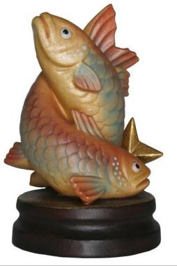 Sternzeichen Fische aus Ahornholz geschnitzt und in der Ausführung Color mit Ölfarben handbemalt. Ausdrucksstarke Holzschnitzerei in bester Qualität. Der Fisch und seine Charaktereigenschaften im Überblick Der typische Fisch ist charmant, einfühlsam, empfindsam, feinfühlig, fröhlich, geheimnisvoll, geduldig, gesellig, grosszügig, hilfsbereit, hingabefähig, innig, inspirierend, intuitiv, medial, mitfühlend, mitleidend, mystisch, phantasievoll, romantisch, schillernd, seelenvoll, selbstlos, sensibel, sentimental, verständnisvoll und verträumt. Schwächen: ängstlich, beeinflussbar, chaotisch, disziplinlos, entscheidungsschwach, gehemmt, labil, prinzipienlos, sentimental, überempfindlich, umständlich, unfassbar und unzuverlässig. Lebensmotto: Ich fühle mich mit allem verbunden! Ich glaube!
